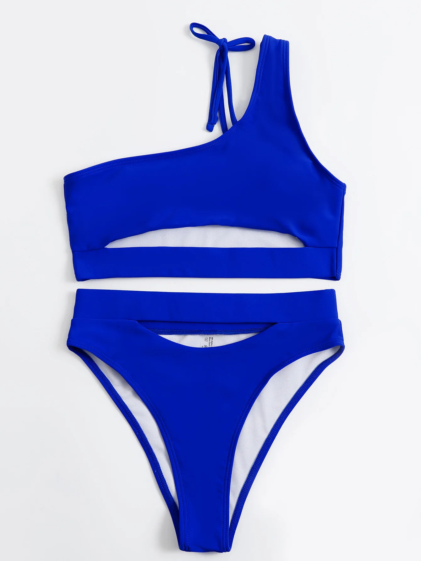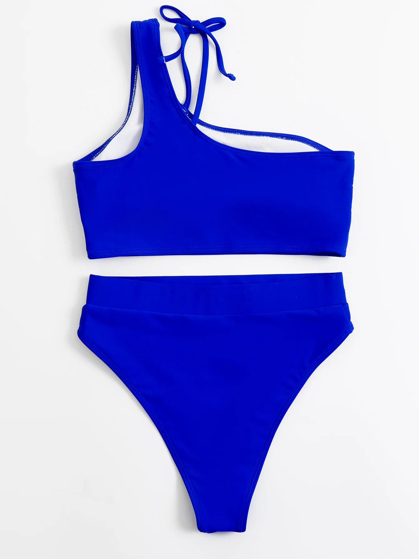Women's Breathable One-Shoulder Tank Bra and Thong Bottom Two-Piece Bikini Set